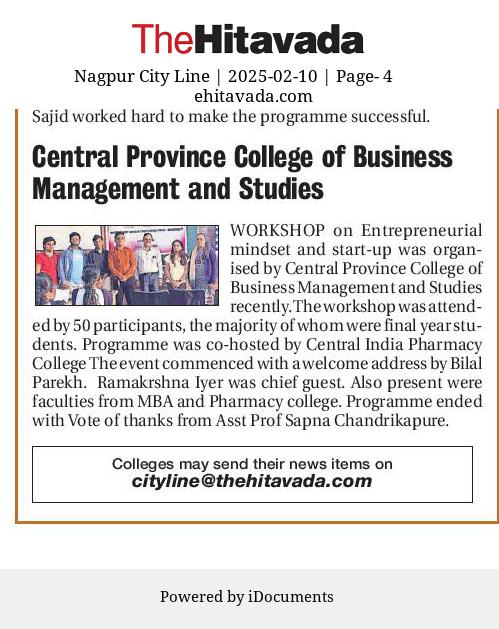Entrepreneurship workshop was held by Central India College of Business Management & Studies on 10th February 2025